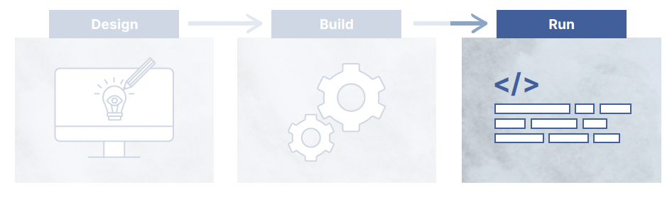 Die Methode KI-4-KMU unterscheidet drei Phasen: Design, Build und Run (siehe Abbildung 1). In der Design-Phase hilft die Methode Unternehmen, KI-Anwendungen zu finden, die zum Erfolg des Unternehmens beitragen. Die Build-Phase besteht aus einem Vorgehensmodell, um KI-Lösungen angepasst entwickeln und implementieren zu können, bei dem Mensch und KI sich effektiv ergänzen. In der Run-Phase wird die Lösung eingeführt, um sie im Unternehmensalltag erfolgreich anwenden zu können.